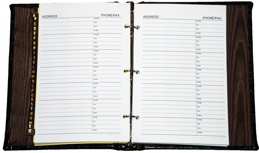 Features : Reptile textured, precision-crafted from the finest genuine leather. Dark brown moiré lining interior. Desk Size - 6-Ring. A-Z and tabbed indices - black tabs with gold lettering. Comes in additional colors and textures - please call for details on production time for custom colors.